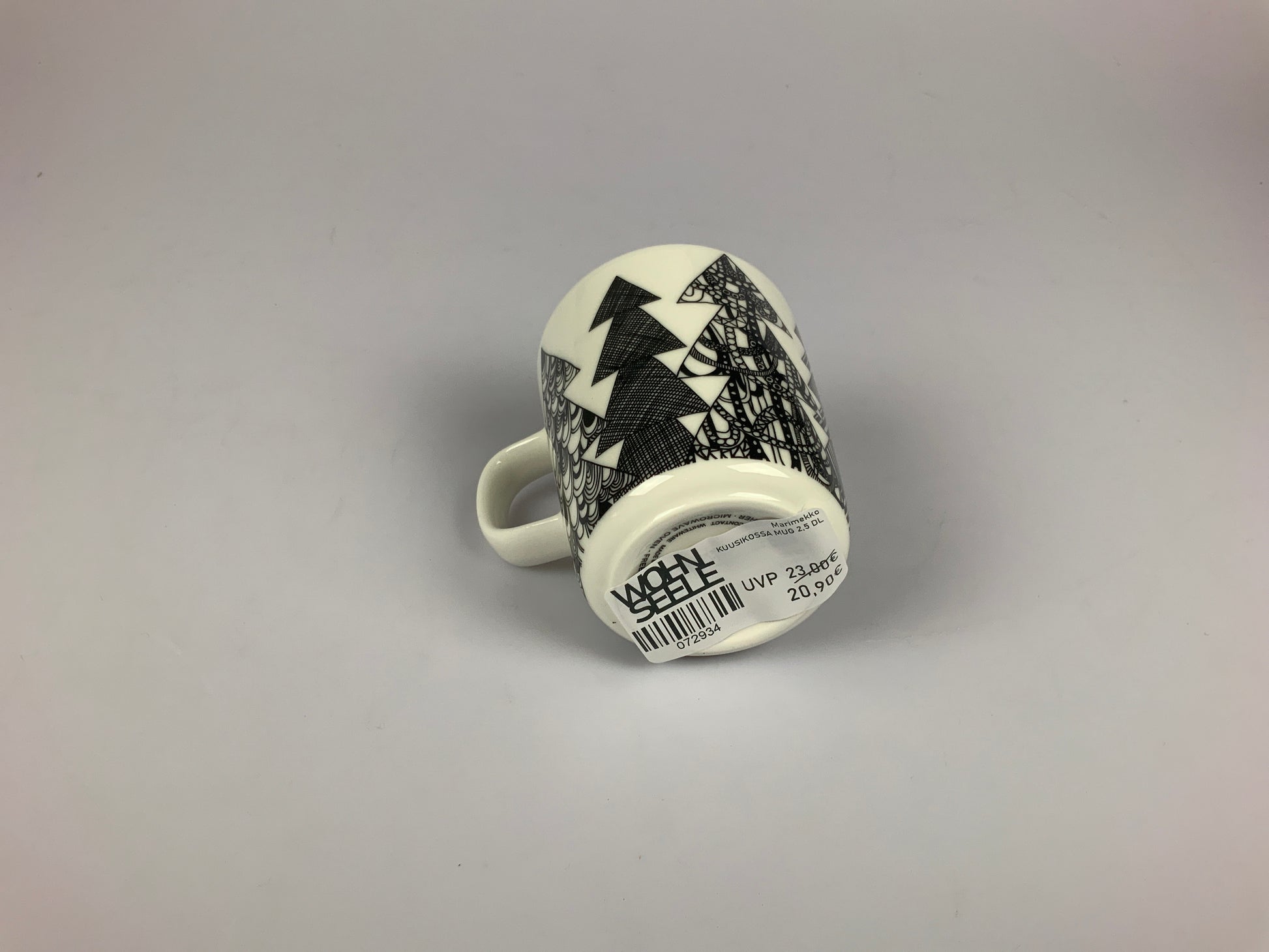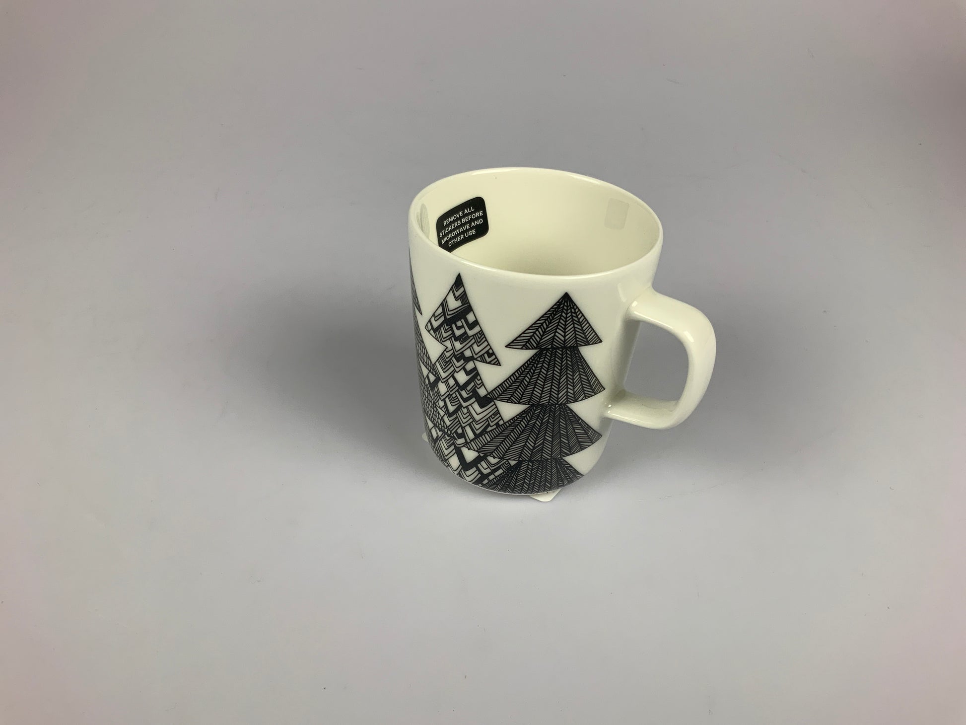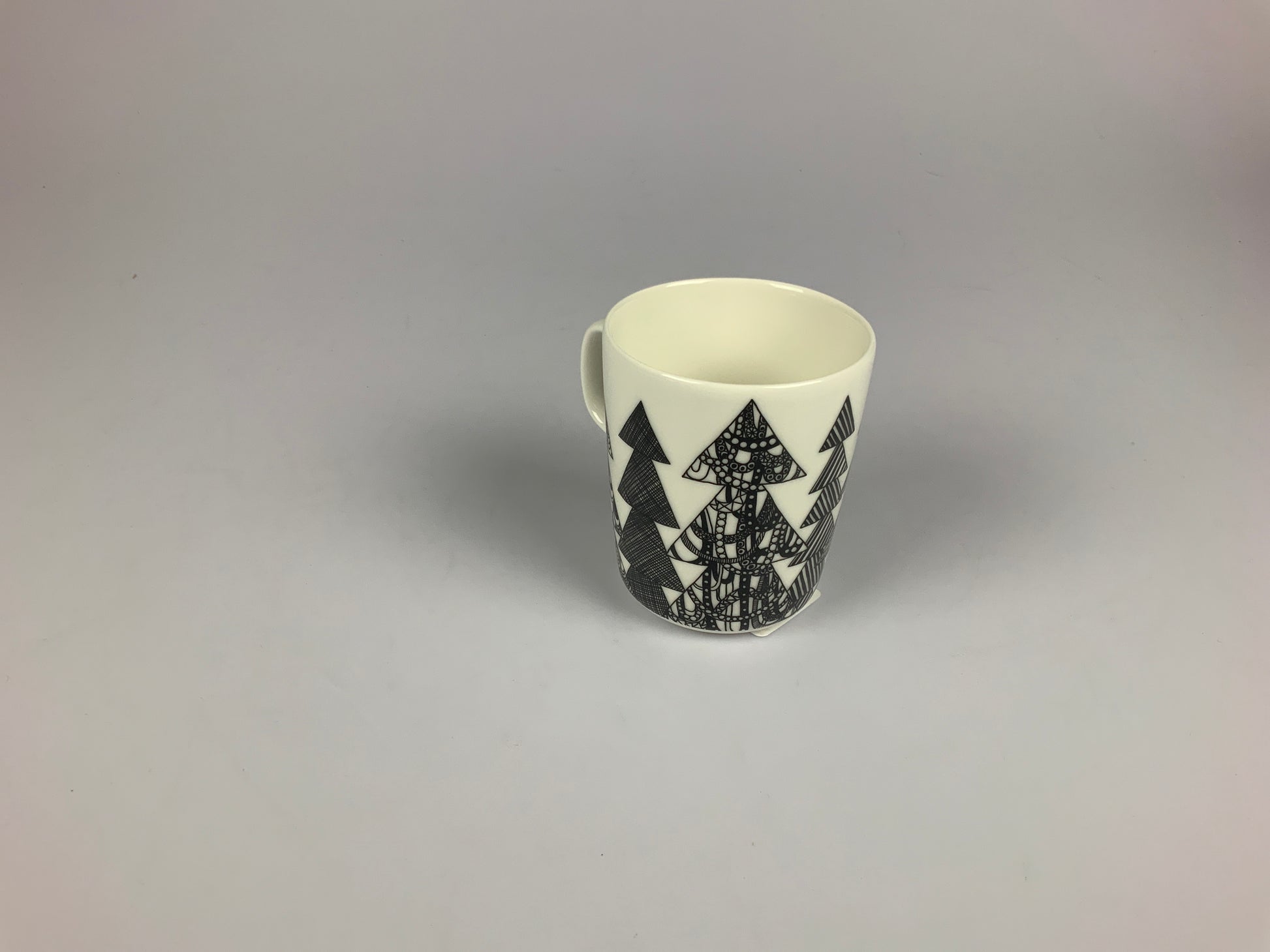 Marimekmo Becher im stimmungsvollen Kuusikossa Design mit stilisierten Tannenmotiven. Mit 2,5 dl Fassungsvermögen ideal für Kaffee, Tee oder heiße Schokolade. Hergestellt aus hochwertigem Steingut – langlebig, robust und skandinavisch modern.