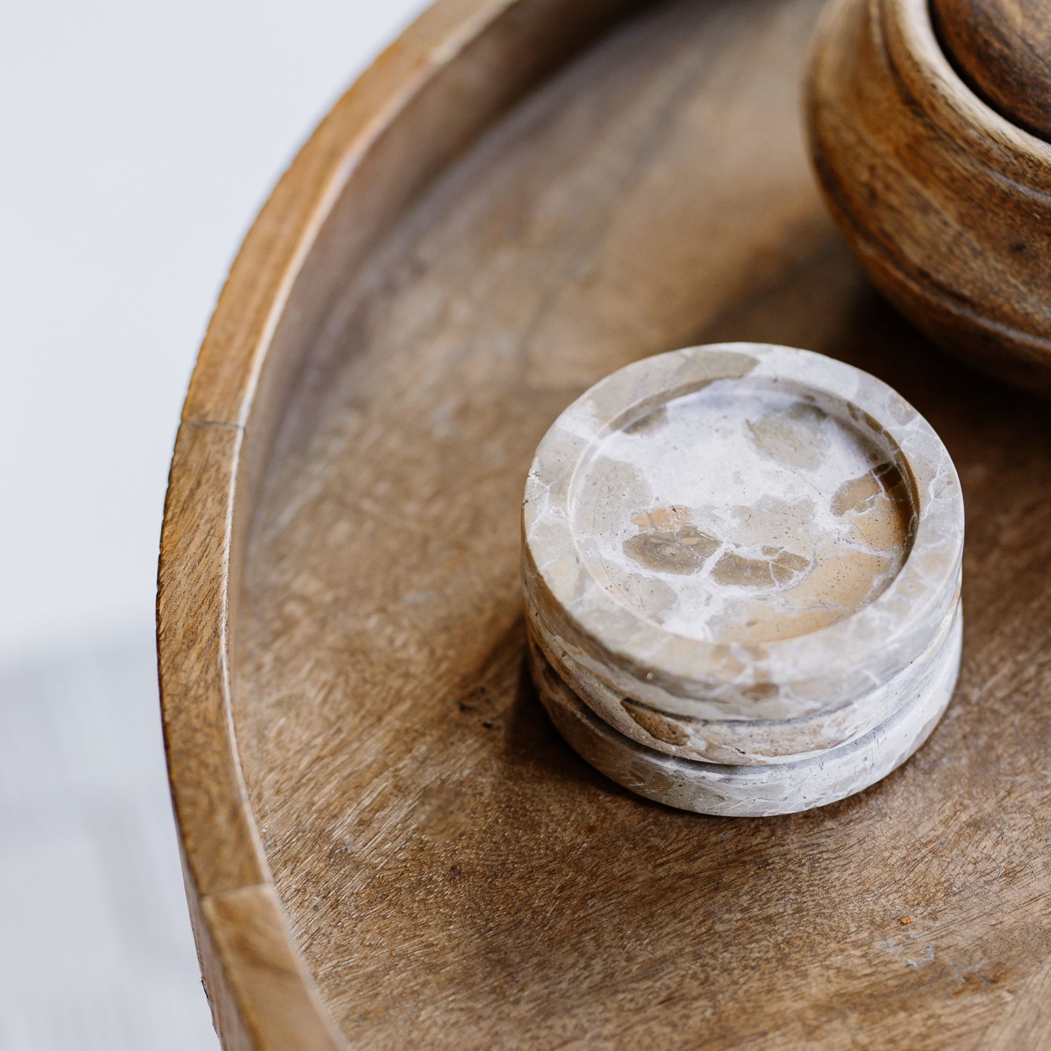 Lernen Sie das 10 cm große beige Marmor-Untersetzer-Set aus der Opus-Kollektion kennen. Perfekt zum Schutz von Oberflächen und zur stilvollen Ergänzung Ihres Esstisches. Diese Untersetzer fügen sich nahtlos in jedes Dekor ein und sind ideal für sowohl private als auch Boutique